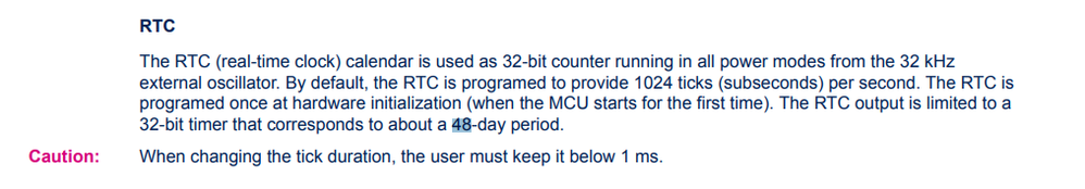 My projects should work for years on LoRaWAN public network and I noticed a comment in the user manuals about the duration (48 days) of RTC both LoRa middleware.