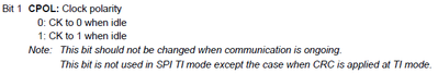 I have tried enabling and disabling the SPI peripheral just before or after changing CPOL, but this has not changed the result.