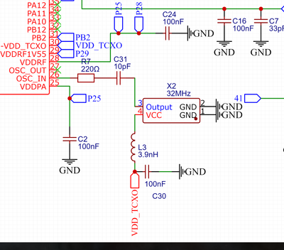 I'm designing a board using STM32WLE5CCU6 MCU and decided to use a 32-MHz Clipped Sine Wave TCXO instead of a crystal for the HSE32 clock.