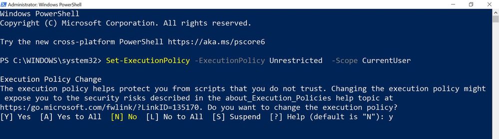 Set-ExecutionPolicy -ExecutionPolicy Unrestricted -Scope CurrentUser