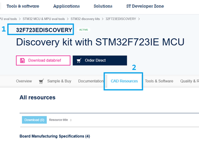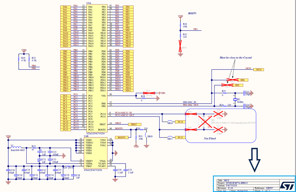 You can always find the schematics in the [CAD Resources] tab on the product page for the microcontroller. Click here to view an example for the 32F723EDISCOVERY.