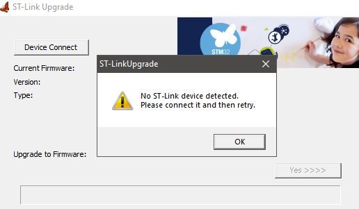 Could you share the ST-LinkUpgrade.exe screenshot when you click 'Device Connect' ?