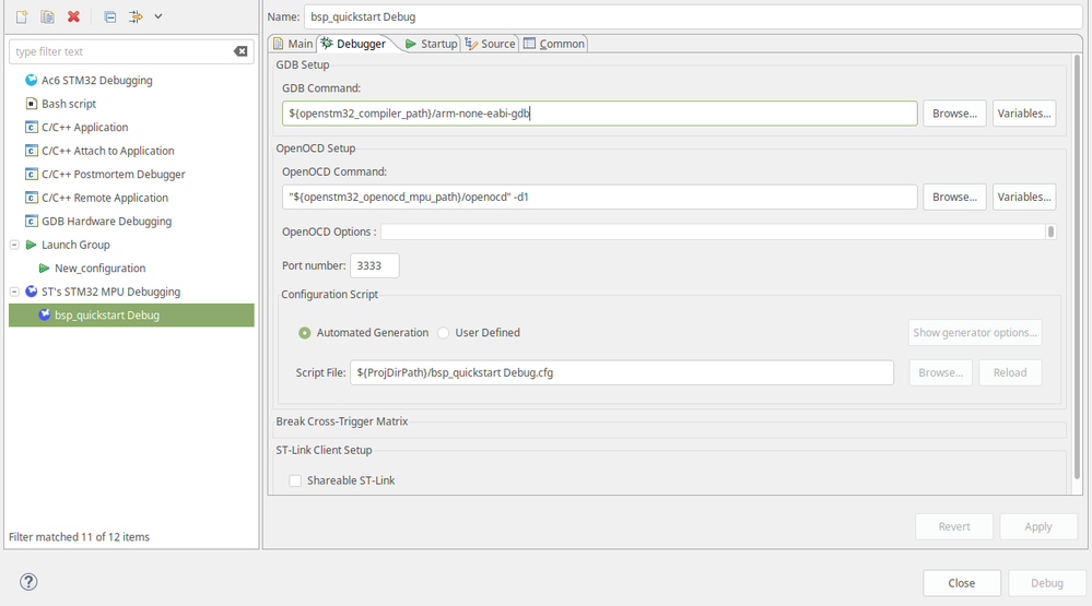 i am trying to debug firmware on cortex-m4 of STM32MP157-Eval. i had success debugging OpenAmp_TTY_echo example as instructed in https://wiki.st.com/stm32mpu/wiki/Modify,_rebuild_and_reload_a_firmware. But while trying to debug a simple hello world example by same method, the Debug button is always deactive and i am not getting any kind of error or missing setting on debug window as well.