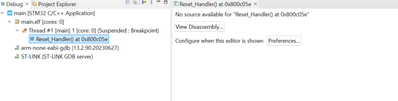 The below is my debugger view (I put a breakpoint at Reset_Handler hence the halt)