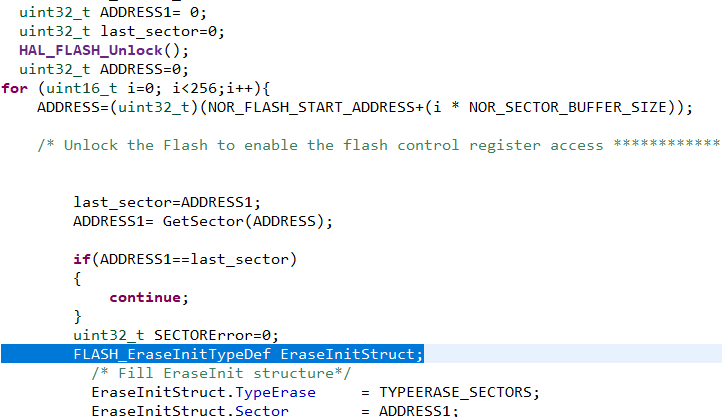 I have a problem with this part of the code that involves the HAL erase function. I want to calculate the sector address from the block number i, but after execution, I encounter an error during debugging: "target ST-LINK error (DEV_TARGET_NOT_HALTED)." any one can you give me a solution please