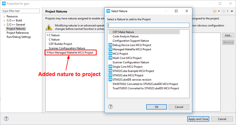 Manually editing the ".cproject" file feels like a dirty hack to me and not sustainable long term. I am going to create a new thread question where I try to solve it using a different approach by creating an STM32 project and trying to change it from a Managed CDT project nature to an unmanaged Makefile project nature.