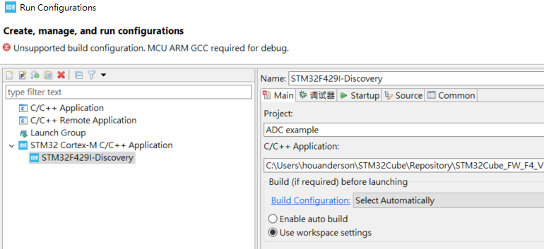 I'm a beginner of STM32. I get a STM32F429-Discovery and try to use STM32CubeIDE to start my journey. But I have a problem to import the example. I follow other people's question and import the example by "Projects from Folder or Archive. But in the Run configurations page I still can't start the running because "Unsupported build configuration. MCU ARM GCC required for debug". Do you know how to make it work?