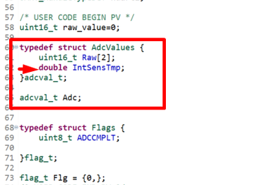 I wrote an application as below which prints formatted values. However, when I print the Adc.IntSensTmp, I dont see the value as expected. Instead, I see the output below. Could you pls help me resolve ?