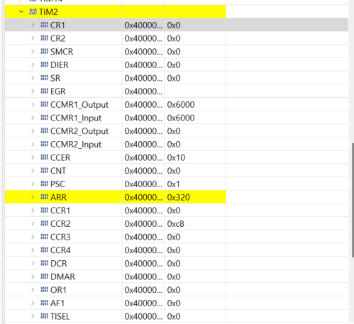 While debugging I can edit some timer registers (ARR,PSC,CCR,SMCR...) directly in the SFRs tab of STM32IDE but not the CR1 and CR2 registers.