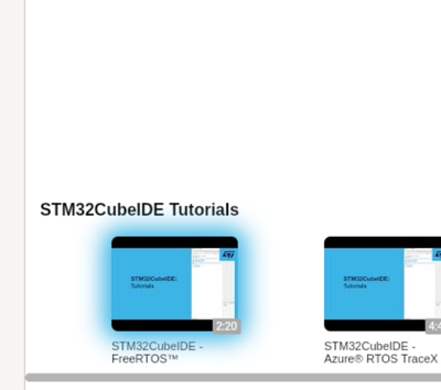 Specifically, the video tutorials linked in Help->Video tutorials are the ones I'm referring to. They go quite fast and have no voice over, but also the hyperlink for the FreeRTOS one is broken: