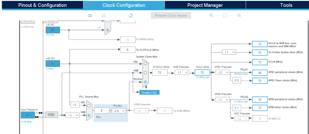 I'm wondering why I can't configure 72MHz clock in the Clock configuration panel in CubeIDE