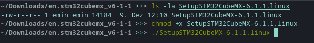 chmod +x SetupSTM32CubeMX-6.1.1.linux