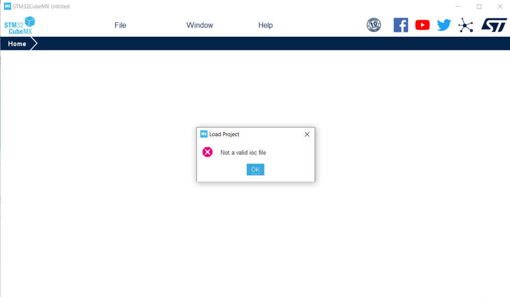 In the STM32CubeMX I click "File -> New project", choose the board(STM32F302R8). Then I click generate code, enter the project path and project name, and click generate code again. After the code is generated, the following window pops up.I click "Open Project", and the following image pops up with the error "Not a valid ioc file."