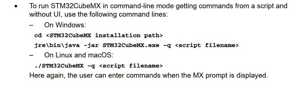 To run STM32CubeMX in command-line mode, getting commands from a script, use the following command lines: