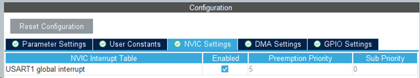 I try to receive data with the USART1 in LIN mode using interrupts. Unfortunately I can't get it to work. This is the configuration of the USART1: