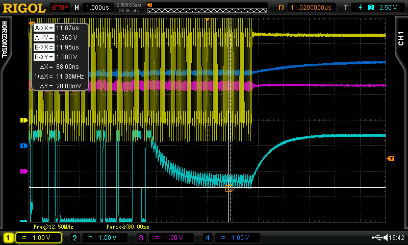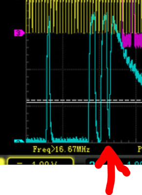 This is when I used the Onboard-Pullup (82k) on the Target-Board in parallel with the STM32-Pull-ups. (approx. 40k)