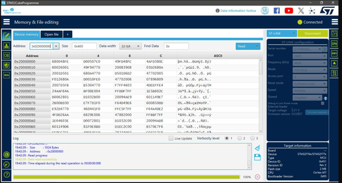 Can you type in Read Address the RAM address @0x20000000 : and see/send the message/log after reading ?