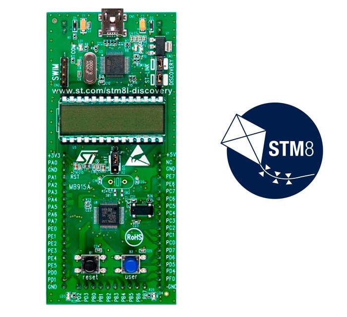 The STM8L-DISCOVERY doesn't need any special cables, just a mini-USB cable that plugs directly into the mini-USB jack at the top of the STM8L-DISCOVERY. You'd only need a debugger with SWIM if you want to connect it directly to the STM8 (the target MCU), but the STM8L-DISCOVERY already has the debugger ST-Link for that (on the picture above the display).
