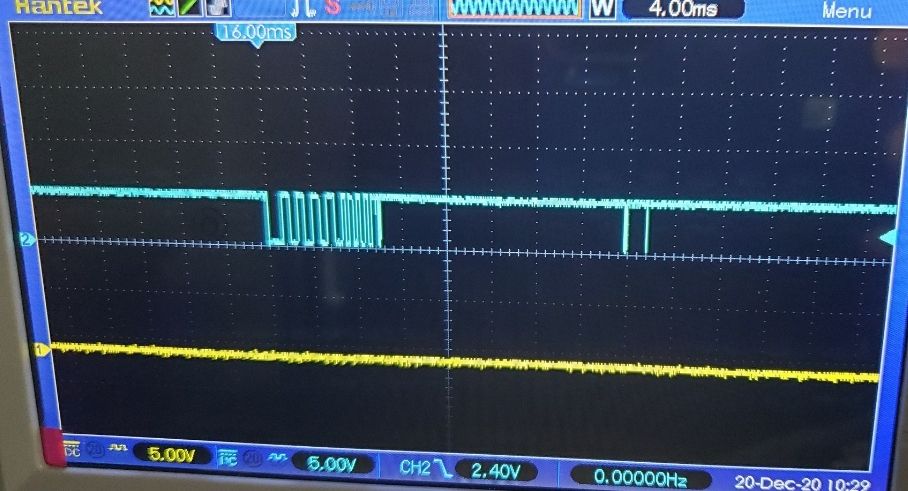 NRST pulled low: Blue = SWIM, Yellow = NRST